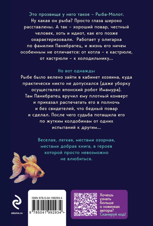 Это прозвище у него такое — Рыба-Молот. Ну какая он рыба? Просто глаза широко расставлены. А так — хороший повар, честный человек, хоть и идиот, как его позже охарактеризовали. Работает у олигарха по фамилии Панибратец, и жизнь его ничем особенным не отличается: от котла — к кастрюле, от кастрюли — к холодильнику…