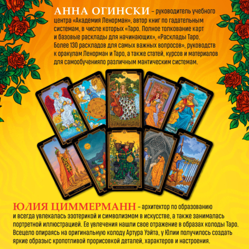 ЮЛИЯ ЦИММЕРМАНН — архитектор по образованию, всегда увлекалась эзотерикой и символизмом в искусстве, а также занималась портретной иллюстрацией. Ее увлечения нашли свое отражение в образах колоды Таро. Всецело опираясь на оригинальную колоду Артура Уэйта, у Юлии получилось создать яркие образы с кропотливой прорисовкой деталей, характеров и настроения.