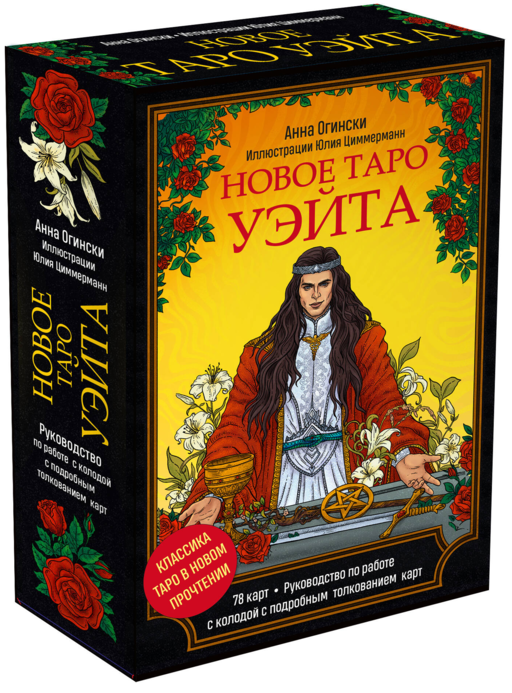 «НОВОЕ ТАРО УЭЙТА» — переосмысленная и бережно адаптированная классика Таро от таролога и специалиста по мантическим системам АННЫ ОГИНСКИ и художницы ЮЛИИ ЦИММЕРМАНН. Яркие цвета, тщательно прорисованные лица и одежда, красивейшие пейзажи и глубокое уважение к образам и смыслам оригинального Таро Уэйта делают эту колоду идеальной первой колодой начинающего таролога и отличным подарком всем ценителям классического подхода к Таро.