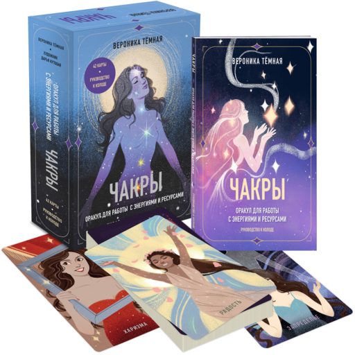 Оракул «Чакры» Вероники Тёмной, создательницы популярного сердечного оракула «Лес любви», это колода, позволяющая оценить состояние своих чакр и рассмотреть энергии, которые влияют на те или иные события, ваше самочувствие и ресурсы. Колода состоит из 42 карт с понятными, эмоциональными образами, которые легко читаются и находят отклик в сердце. Карты делятся на группы — по шесть карт для каждой чакры — и описывают как положительные, так и отрицательные ее проявления в нашей жизни.