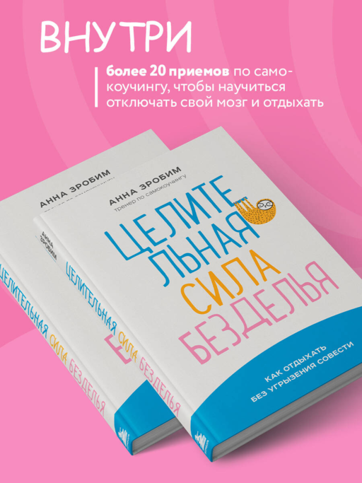 Написанная тренером по самокоучингу Анной Зробим, она учит одному из самых полезных навыков 21-го столетия — навыку отдыхать. Благодаря психологическим инструментам вы поймете, как перенастроить свой мозг, чтобы избавить себя от утомляющей вереницы мыслей и научиться ДЕЛАТЬ ничего. То есть расслабляться с пользой без угрызения совести.