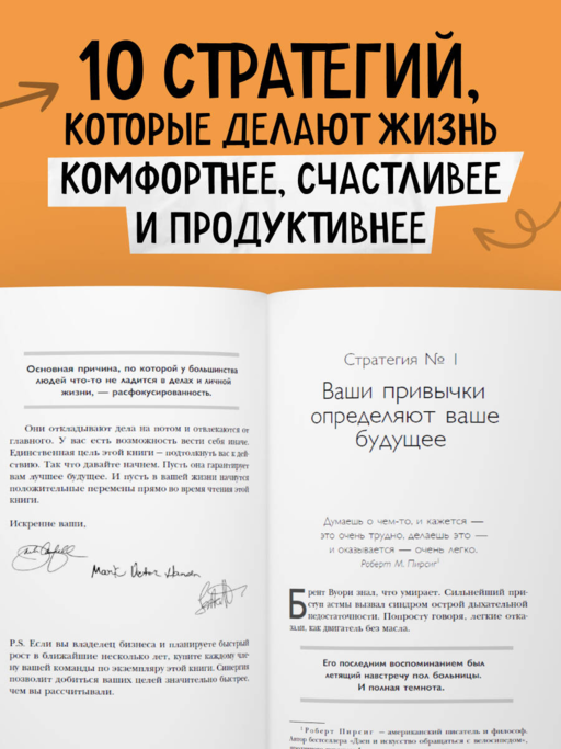 Редкий пример книги по саморазвитию, в которой нет ничего лишнего или бесполезного. Авторы подробно описывают 10 ключевых стратегий, которые не просто помогают достигать своих целей – они делают жизнь комфортнее, счастливее и продуктивнее.