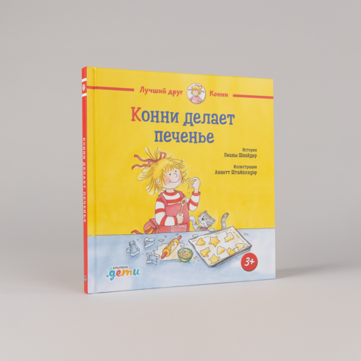 Конни решила сама приготовить печенье, не дожидаясь, пока мама ей в этом поможет. К счастью, у мамы всё-таки нашлось время, и печенье у них получилось вкусное и очень красивое.