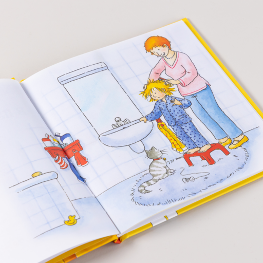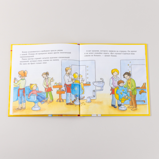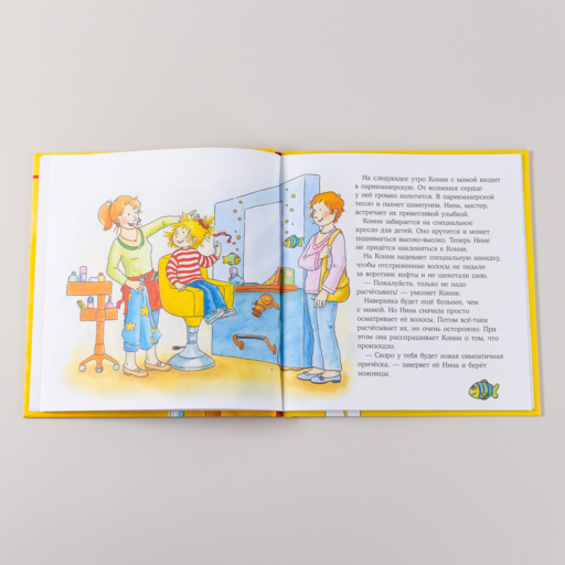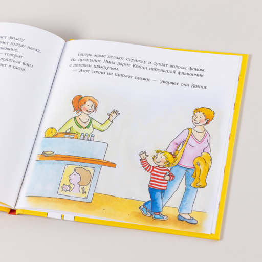 Конни тоже не хотела стричься, ведь даже просто расчёсываться по утрам было больно. Но мама смогла уговорить Конни пойти с ней в парикмахерскую, и оказалось, что там не только не страшно, но даже интересно.