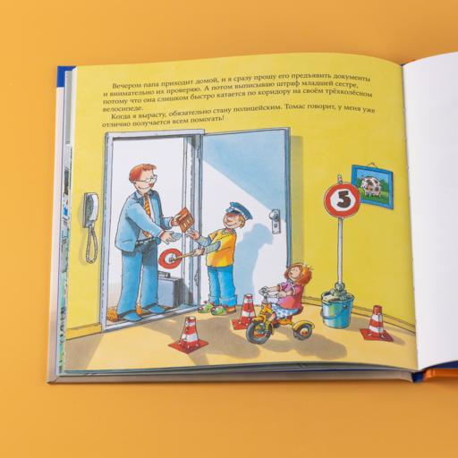 Один день из жизни сотрудника полиции познакомит детей с устройством полицейского участка и работой разных подразделений и расскажет, зачем полицейскому велосипед и мигалка.