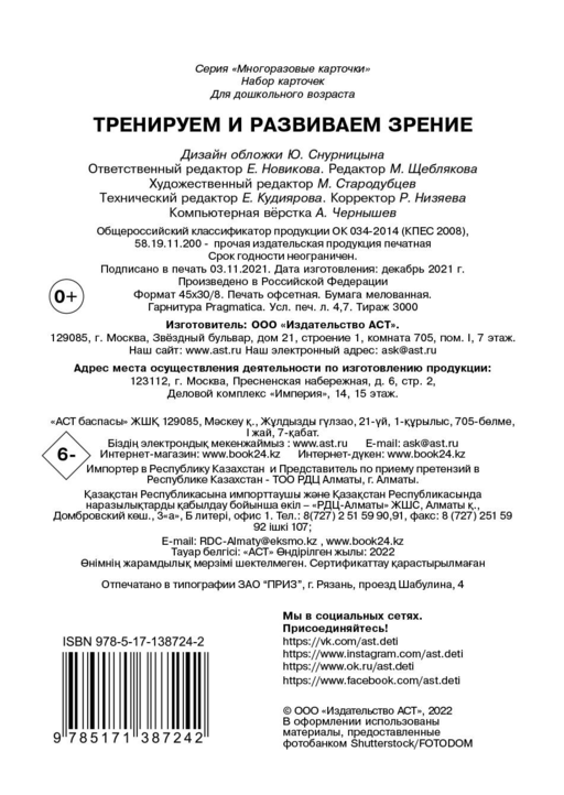 «Тренируем и развиваем зрение» — это набор карточек для коррекции и поддержки зрения. В набор входит 35 двухсторонних карточек с заданиями, которые помогут ребёнку повысить остроту зрения, снять напряжение, снизить утомляемость глаз.