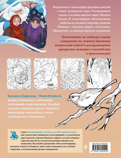 Серия «Раскрашиваем сказки и легенды народов мира» — это множество авторских иллюстраций со сказочными персонажами, героями древних мифов и легенд, которые скрасят ваш досуг и помогут развить творческое мышление.