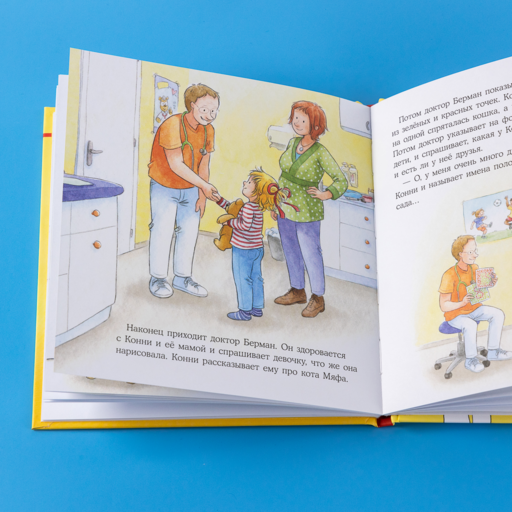 Вместе с Конни подготовьте ребёнка к предстоящему мероприятию: прочитайте, как проходит осмотр у врача, что он проверяет и какие инструменты использует. Если всё обсудить с малышом заранее, он наверняка не будет нервничать и пугаться в поликлинике и ежегодный осмотр пройдёт спокойно.