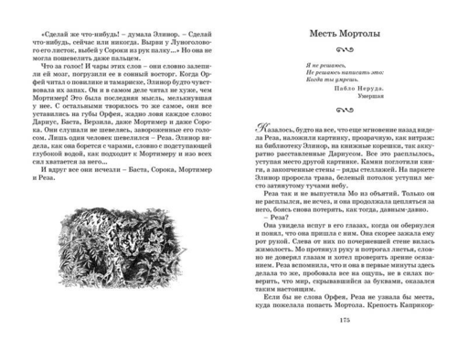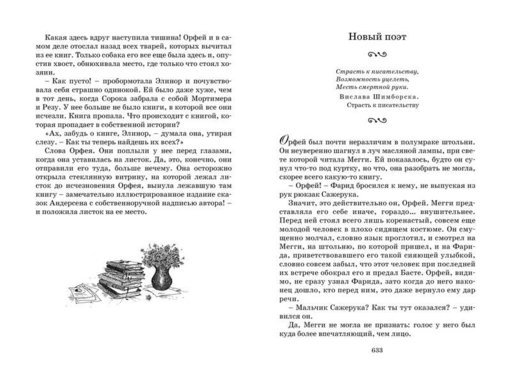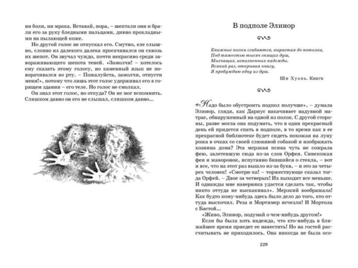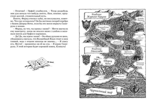 В этой книге рассказывается о новых приключениях героев, попавших с помощью слов в Чернильный мир, мир из бумаги и чернил, где встречаются феи, русалки и стеклянные человечки. Сажерук возвращается домой. Фарид и Мегги следуют за ним, а вскоре туда отправляются родители Мегги – любовь и дружба не признают преград между мирами.