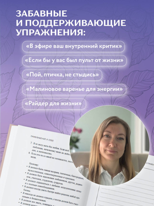 «Моя задача — бережно и плавно провести вас от самокритики к самообъятиям, от неосознанного слива энергии к ее накоплению, а значит — к полной, более насыщенной жизни».