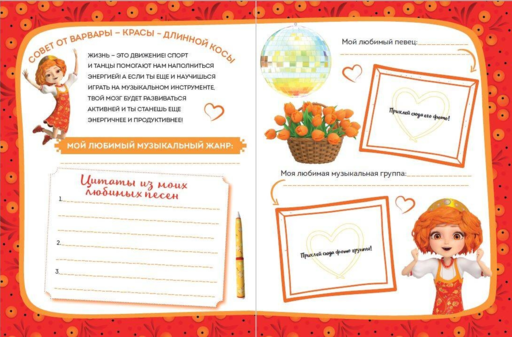 На страницах скетчбука тебя ждут планеры, советы от Царевен, интересные тесты, анкеты для друзей, места для записи секретиков и множество страниц для творчества.