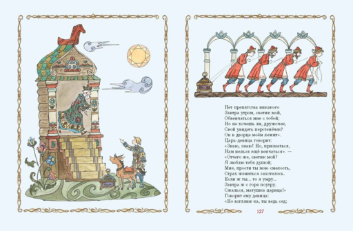 Именно поэтому новое подарочное издание одной из самых любимых детских сказок оформила московская художница, историк Татьяна Муравьёва. Ей принадлежат тонкие и изящные иллюстрации к знаменитым пушкинским сказкам (ISBN 978-5-04-119004-0) и к поэме «Руслан и Людмила» (ISBN 978-5-04-159091-8). Работы художницы напоминают старинные гравюры в рукописных книгах и идеально соответствуют духу самой народной из всех литературных сказок.