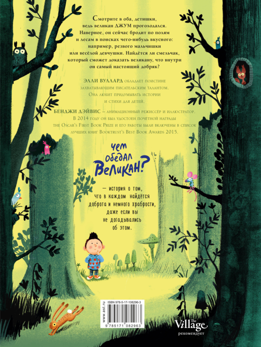 Великанов все боятся: их среда обитания - страшные тёмные пещеры, их любимое лакомство - пухленькие детки, а их язык - это злобный рык. Герой сказки «Чем обедал великан» Элли Вуллард был в точности таким, пока однажды не забрёл в детский сад. Дети изменили мнение великана о самом себе. Оказывается, он добрый малый, который любит... тортики! Лёгкая, наполненная юмором история про злого великана, который неожиданно для себя подружился с потенциальной едой, для детей до 5 лет. Милые ироничные иллюстрации к этой книге нарисовал Бенджи Дэйвис, художник серии «Медведь и Гусик».
