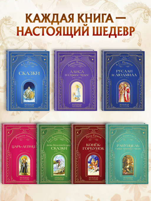 Книги серии «Волшебный мир сказок. Большая коллекция» — это приглашение в удивительное путешествие по таинственным мирам, ставшим зримыми и осязаемыми благодаря искусству художников. Лучшие мастера книжной иллюстрации подарят вам незабываемые впечатления от встречи со сказкой.