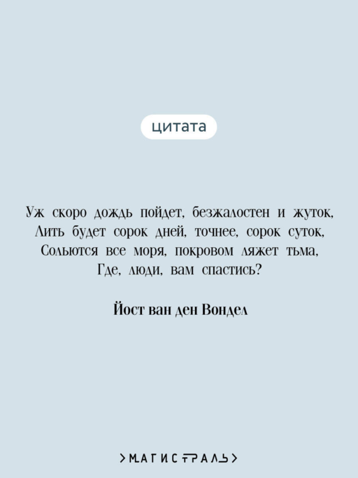 Третья часть трилогии трагедий голландского драматурга Йоста ван ден Вондела, написанная в XVII веке. Вондел, один из крупнейших поэтов и драматургов Золотого века Нидерландов, обращается к сюжету о Всемирном потопе, заимствованному из книги Бытия.