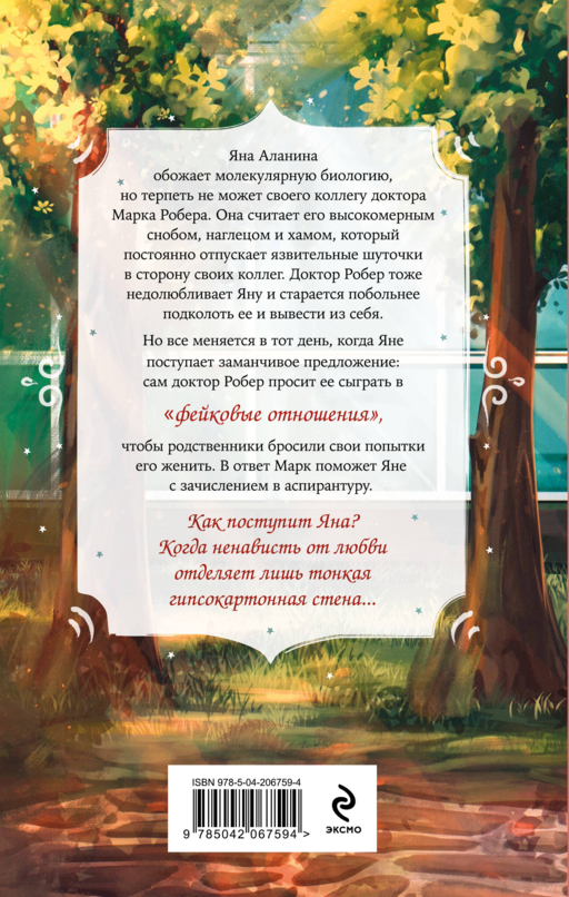 Veronika Fox'un kitapları, ilk aşkla ilgili duygu yüklü hikayeler olup, insanın içine işleyen, karakterlerle empati kurdurup, onları uzun süredir tanıyormuş gibi sevinmesini sağlayan eserlerdir. Yana Alanina moleküler biyolojiyi çok sever ama meslektaşı Doktor Mark Rober'dan hiç hoşlanmaz. Onu kibirli bir kendini beğenmiş, arsız ve kaba biri olarak görür; sürekli meslektaşlarına iğneleyici şakalar yapmaktadır. Doktor Rober de Yana'yı pek sevmez ve onu sinirlendirmek için daha da sert takılır. Ancak her şey, Yana'ya cazip bir teklif geldiği gün değişir: Doktor Rober, akrabalarının onu evlendirme çabalarını durdurmak için Yana'dan 'sahte bir ilişki' yapmasını ister. Karşılığında Mark, Yana'nın lisansüstü okula kaydını sağlar. Yana ne yapacak? Nefret ile aşkı ayıran sadece ince bir alçıpan duvar olduğunda...