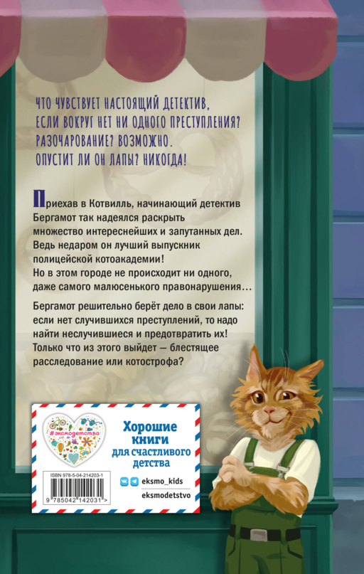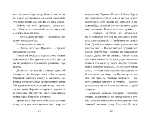 "Kedi Dedektif Maceraları"ndan Winston ve "Max, Kedi Dedektif" serisinden Max hayranlarına! Gerçek bir dedektif suç olmayan bir yerde ne hisseder? Hayal kırıklığı mı? Belki. Peki pes eder mi? Asla! Bergamot, kedi akademisinin en başarılı mezunu ve tarihin en ünlü dedektifi olmaya kararlı. Ama gönderildiği şehirde herkes son derece dürüst. Soruşturma başlatması için hiçbir şans yok gibi görünüyor! Bergamot ne yapmalı? Deniza Nikolaenko — Rus yazar. "Bergamot Kedi'nin Dört Soruşturması"nı yazmaya kendi kedilerinden ilham aldığını söylüyor. Kitap, macera ve kedileri seven çocuklar ve gençler içindir! İçinde atmosferik siyah-beyaz illüstrasyonlar var. Kapak ve renkli ön sayfalar sevimli kedilerle ünlü sanatçı Alina Gagarinova tarafından çizilmiştir. Kitapta büyük punto ve beyaz kağıt kullanılmıştır. 6 yaş ve üzeri okuyucular için uygundur.