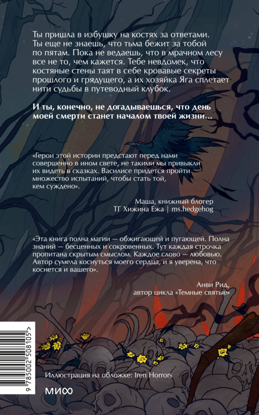 Vasilisa'nın, Baba Yaga'nın ormanına gidiş hikayesinin yeniden anlatımı, cep kitabı formatında Kasvetli, büyüleyici bir masal, rüzgarın sesi ve yaprak hışırtılarıyla dolu Kapağı Iren Horrors tarafından tasarlanmış, ön kapak içi ve kitabın içinde illüstrasyonlar centaurea tarafından yapılmıştır