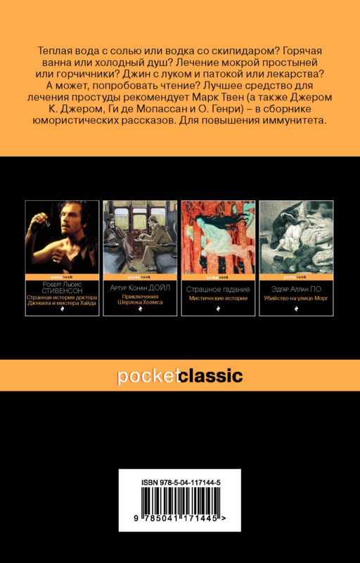 Tuzlu ılık su mu, yoksa terebentinli votka mı? Sıcak banyo mu, soğuk duş mu? Islak çarşaf tedavisi mi, hardal lapası mı? Soğan ve pekmezle cin mi, yoksa ilaçlar mı? Belki de okumayı denemeli? Soğuk algınlığına karşı en iyi tedavi yöntemi Mark Twain (ve aynı zamanda Jerome K. Jerome, Guy de Maupassant ve O. Henry) tarafından önerilen mizahi hikayeler derlemesi. Bağışıklığı güçlendirmek için.
