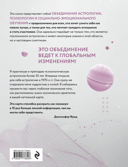 Dr. Jennifer Fried, psikolojik astroloji ve sosyal-duygusal öğrenme alanında 30 yıllık deneyime sahip bir yazar ve psikoterapisttir. Çalışmaları USA Today, New York Times, Huffington Post ve Forbes'te yayımlanmış, Good Morning America ve Fox News'te yer almıştır. Gwyneth Paltrow'nun Goop platformunun sürekli yazarıdır; burada astroloji, ilişkiler ve kişisel gelişim üzerine yazar. Dr. Fried, ayrıca Co-Star: Hyper-Personalized Real Time Horoscopes adlı online uygulamanın baş danışmanıdır. Bu kitap, astroloji, psikoloji ve sosyal-duygusal öğrenmenin birleşimi olup, kendini daha iyi tanımak isteyenler ve ilişkilerini geliştirmek, daha mutlu olmak isteyenler içindir. Sadece astroloji meraklıları ve bu alanda biraz bilgisi olanlar için değil, gerçek şüpheciler için de idealdir. "Psikolojik astrolojiyi 30 yılı aşkın süredir uyguluyor ve öğretiyorum. Astrolojiyi ilk kez 1970'lerde keşfettim. Hemen bilgeliği ve gücüyle büyülendim. Size, doğum haritanızdaki kozmik arketiplerin konumu hakkında derin bir anlayış sunacağım. Bu harita, hayal ettiğinizden en az 10 kat daha fazla kişisel bilgi açığa çıkarabilir." — Jennifer Fried
