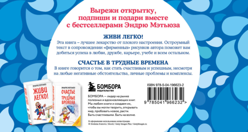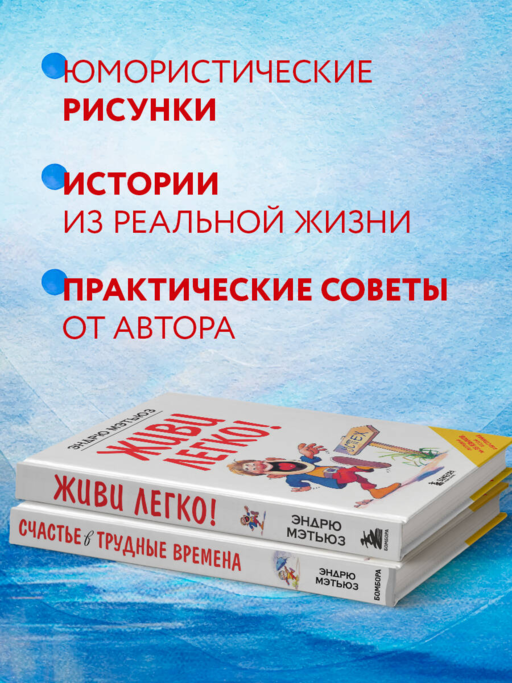 Kesip imzalayabileceğiniz bir banda ile hediye seti. Set, Avustralyalı psikolog, sanatçı ve yazar Andrew Matthews'in iki çok satan kitabını içerir. "Yaşamanın Kolay Yolu!" Stres, depresyon veya sadece kötü ruh hali için mükemmel bir araç. Yazarın benzersiz çizimleriyle eşlik eden zarif ve esprili metin, aşk, dostluk, kariyer ve eğitimde başarıya nasıl ulaşılacağını gösteriyor. "Zor Zamanlarda Mutluluk" Her sorunun bir çözümü olduğuna dair bir kitap ve henüz çözümü bulamamış olsanız bile yine de mutlu olabileceğinizi anlatıyor. Yazarın net ve alışılmadık önerileri, hayatın ne kadar harika olduğunu daha iyi anlamanıza yardımcı olacak gerçek hikayelerle destekleniyor.