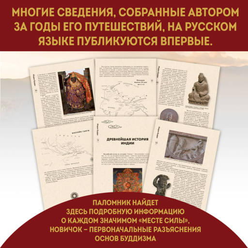 Bilim insanı, gezgin ve uygulayan Budist Boris Erokhin tarafından yazılmış benzersiz ve güzel resimlerle süslenmiş Hindistan rehberi. Yazarın yıllar süren seyahatlerinde topladığı birçok bilgi ilk kez Rusça olarak yayınlanmaktadır. Hacı buradan her önemli "güç noktası" hakkında ayrıntılı bilgi bulacak, yeni başlayanlar Budizmin temel açıklamalarını öğrenecek, bilim insanları ise yerleşik anlayışları büyük ölçüde tazeleyen olayların sağlam bir resmini edinecektir.