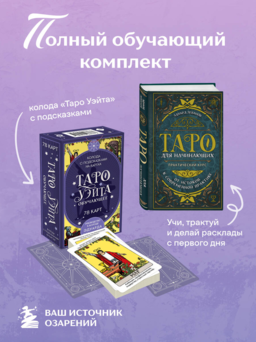 Комплект: Таро для начинающих. Практический курс + Таро Уэйта обучающее. Колода с подсказками на картах (78 карт, руководство Эдуарда Леванова по QR-коду)