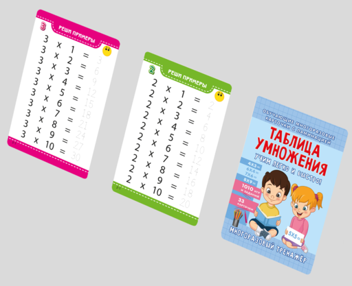 Многоразовые карточки пиши-стирай — отличный вариант для изучения таблицы умножения. Пособие содержит тренировочные упражнения, примеры, игры и головоломки по авторской методике известного педагога и психолога Ольги Звонцовой. Ламинированные карточки долговечны и могут использоваться многократно. Ребенок сможет легко стирать написанное, не будет бояться ошибок, почувствует себя увереннее. Игровой подход в сочетании с математическими упражнениями позволяет лучше запоминать материал, активизирует работу мозгу, улучшает внимание и память. Кругленые углы обеспечивают безопасность при работе с карточками. Набор удобно взять с собой в школу или в дорогу. Обучающие карточки подойдут для подарка школьнику.