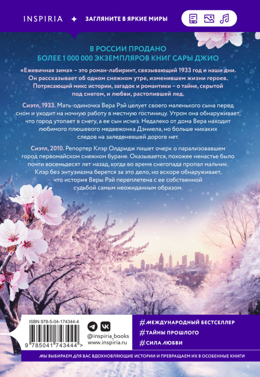 «Ежевичная зима» — это роман-лабиринт, связывающий 1933 год и наши дни. Он рассказывает об одном снежном утре, изменившем жизни героев. Потрясающий микс истории, загадок и романтики — о тайне, скрытой под снегом, и любви, растопившей лед.
