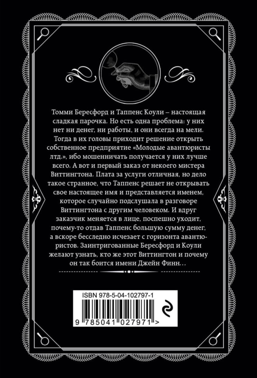 Томми Бepecфорд и Таппенс Коули – настоящая сладкая парочка. Но есть одна проблема: у них нет ни денег, ни работы, и они всегда на мели. Тогда в их головы приходит решение открыть собственное предприятие «Молодые авантюристы лтд.», ибо мошенничать получается у них лучше всего. А вот и первый заказ от некоего мистера Виттингтона. Плата за услуги отличная, но дело такое странное, что Таппенс решает не открывать свое настоящее имя и представляется именем, которое случайно подслушала в разговоре Виттингтона с другим человеком. И вдруг заказчик меняется в лице, поспешно уходит, почему-то отдав Таппенс большую сумму денег, а вскоре бесследно исчезает с горизонта авантюристов. Заинтригованные Бересфорд и Коули желают узнать, кто же этот Виттингтон и почему он так боится имени Джейн Финн…