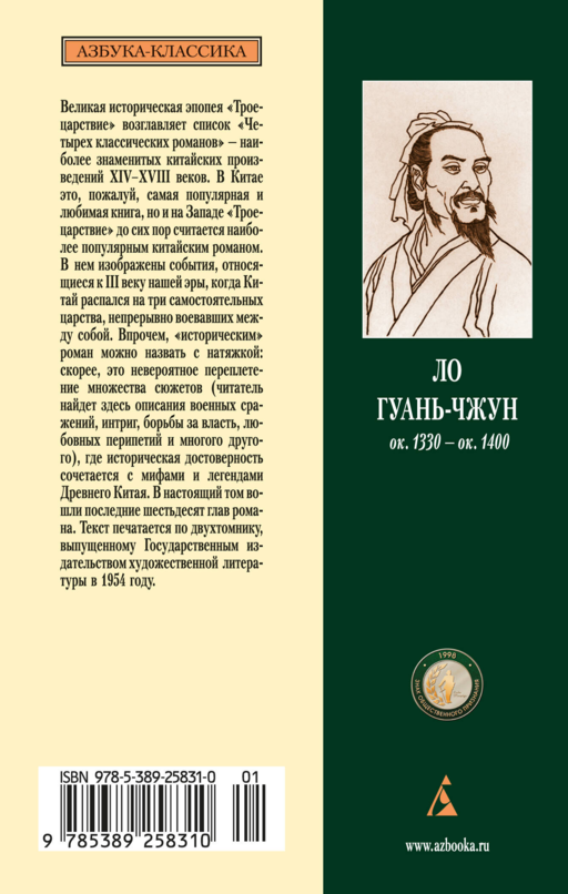 Великая историческая эпопея "Троецарствие" возглавляет список "Четырех классических романов" — наиболее знаменитых китайских произведений XIV–XVIII веков. В Китае это, пожалуй, самая популярная и любимая книга, но и на Западе "Троецарствие" до сих пор считается наиболее популярным китайским романом. В нем изображены события, относящиеся к III веку нашей эры, когда Китай распался на три самостоятельных