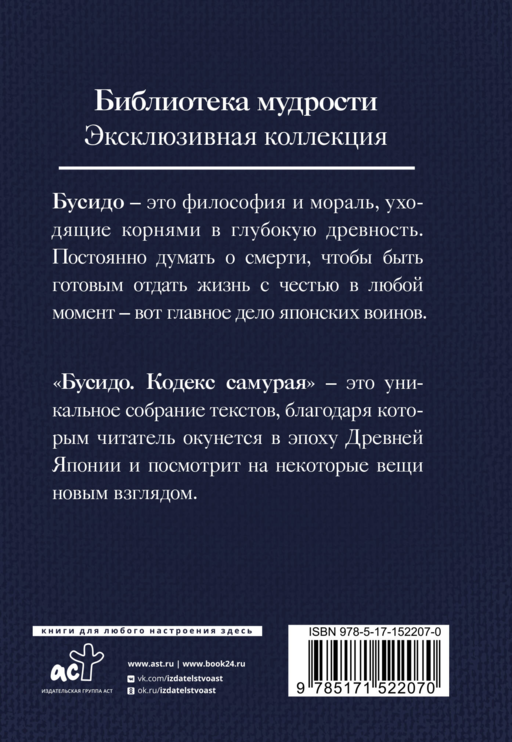 «Бусидо. Кодекс воина» - это уникальное собрание текстов, благодаря которым читатель окунется в эпоху Древней Японии и посмотрит на некоторые вещи новым взглядом.