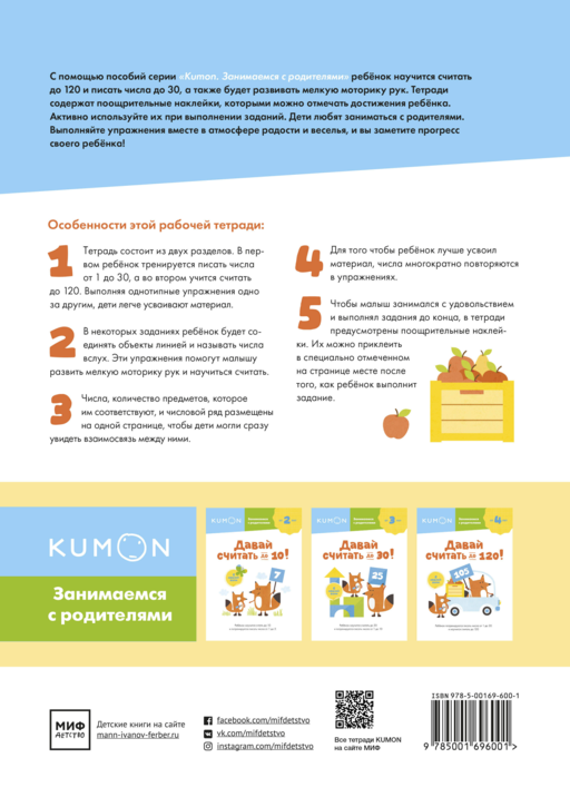 С помощью рабочей тетради "Kumon. Давай считать до 120!" ребенок: