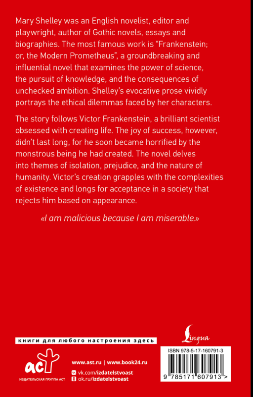 Название книги Frankenstein; or, The Modern Prometheus = Франкенштейн, или Современный Прометей