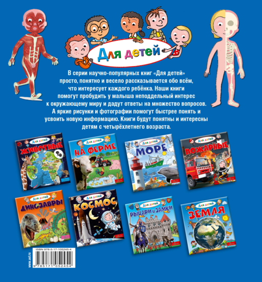 В серии научно-популярных книг «Для детей» просто, понятно и весело рассказывается практически обо всем, что интересует каждого ребенка. Наши книги помогут пробудить у ребенка неподдельный интерес к миру, который его окружает. Коллекция книг дает ответы на вопросы, которые задают дети с самого раннего возраста. Краткие и ясные ответы проиллюстрированы рисунками и фотографиями, делающими их еще понятнее. Книги отличает очень яркий и интересный макет. Будут интересны и понятны детям с четырехлетнего возраста.