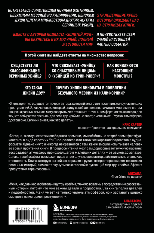 Данная книга, которую вы сейчас держите в руках, не просто расскажет несколько реальных историй, а сможет окунуть вас с головой в пугающий мир "тру-крайма". Эффект присутствия гарантирован». — Михаил, «true crime на диване»