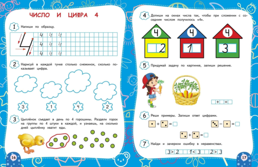 Занимаясь, ребенок познакомится с понятиями «больше — меньше», «выше — ниже», «легче — тяжелее», «раньше — позже», «один — много», «столько же», научится ориентироваться на листе бумаги, писать цифры и математические знаки, рисовать узоры и выполнять графические диктанты, познакомится с составом числа, будет решать примеры и задачи на сложение, вычитание и логику. Именно эти навыки позволят ребёнку успешно учиться в школе и раскрыть все свои таланты.