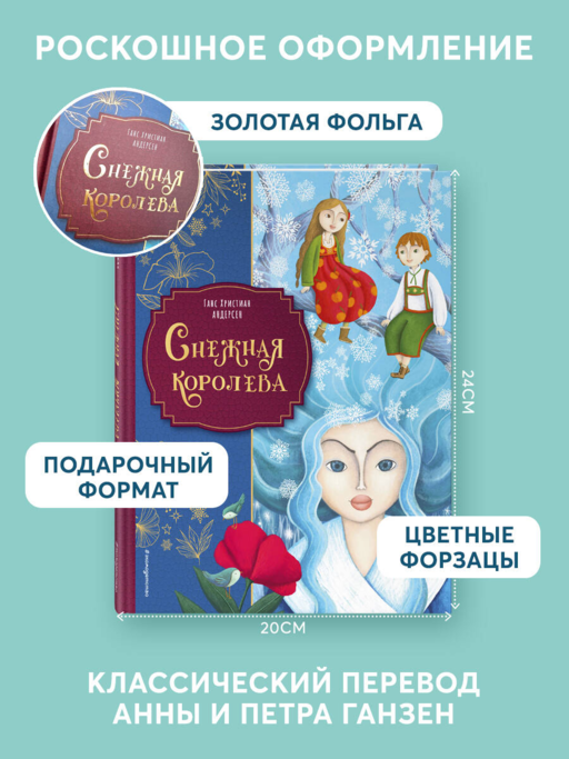 «Снежная королева» — самая известная сказка Ганса Христиана Андерсена, переведённая на 126 языков мира, второе столетие подряд остаётся одной из самых важных книг детства. В увлекательном сюжете переплелись колдовство и красота, необыкновенное путешествие, удивительные герои, самоотверженность, надежда и, конечно, яркое торжество добра над злом. Маленькая отважная Герда докажет всему миру, что верная дружба и преданная любовь способны растопить даже ледяное сердце, а полчища Снежной королевы бессильны перед искренней и горячей верой.
