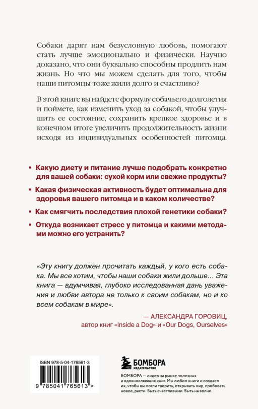 За последние несколько десятилетий собаки стали чаще болеть и преждевременно умирать. Почему? Ученые выяснили, что такие серьезные заболевания, как рак, ожирение, диабет, дегенерация органов и аутоиммунные заболевания поражают не только людей, но и собак. В результате наши любимые спутники на протяжении большей части своей жизни страдают от проблем со здоровьем, которые можно было бы предотвратить. В этой книге вы найдете практичные и проверенные рекомендации по правильному уходу за собаками. Родни Хабиб и Карен Беккер, доктор медицинских наук, путешествовали по всему миру, чтобы собрать лучшие знания ведущих генетиков, микробиологов и исследователей долголетия. Они также опросили людей, чьи собаки дожили до 20 и даже 30 лет. Результатом стало всеобъемлющее руководство, наполненное удивительной информацией, бесценными советами и вдохновляющими историями о собаках и людях, которые их любят.