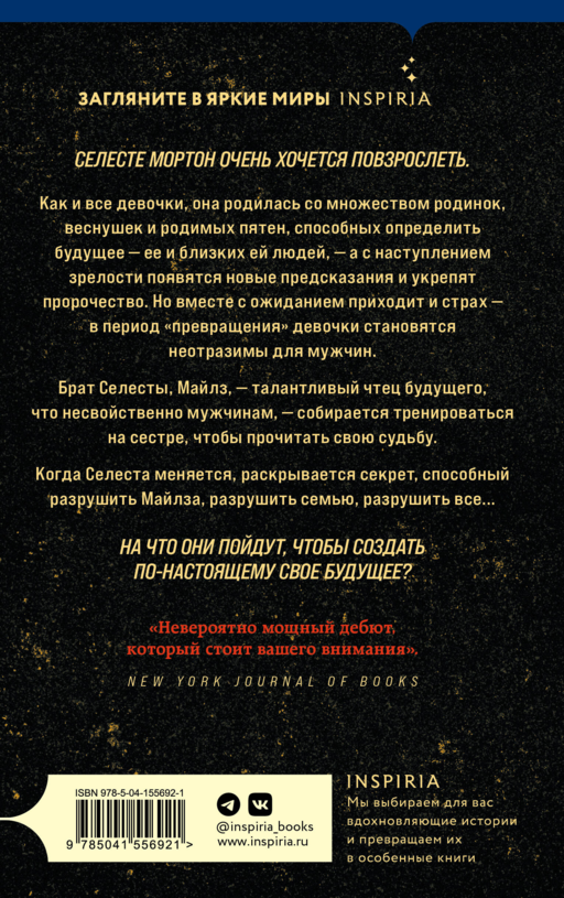 Селесте Мортон очень хочется повзрослеть. Как и все девочки, она родилась со множеством родинок, веснушек и родимых пятен, способных определить будущее: ее и близких ей людей, — а с наступлением зрелости появятся новые предсказания и укрепят пророчество. Но вместе с ожиданием приходит и страх — в период «превращения» девочки становятся неотразимы для мужчин.
