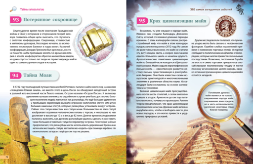 Энциклопедия на все 365 дней в году в самом популярном формате вопросов и ответов, разработанная специально для ребят 10—12 лет! В одной книге — целых 365 удивительных, ещё неразгаданных секретов нашей планеты и истории человечества, которые дополнены версиями событий, догадками учёных и предположениями исследователей. Полезная информация изложена просто и доступно, поэтому чтение увлечёт ребёнка и легко наполнит новыми знаниями и интересом к изучению мира вокруг. А яркое оформление превратит эту энциклопедию в идеальную настольную книгу любознательного школьника.