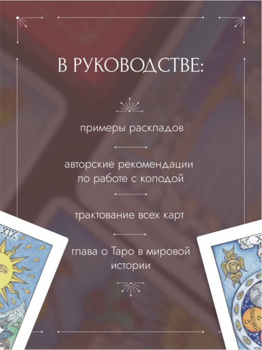 - авторское руководство с расшифровкой символизма и толкованием всех карт колоды;
