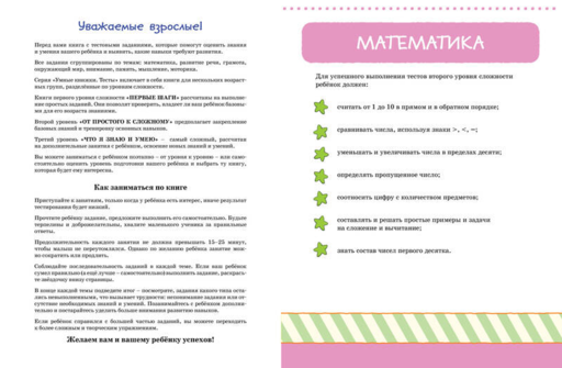 Автор книг этой серии — Земцова Ольга Николаевна, кандидат педагогических наук, руководитель Центра дошкольного развития и воспитания детей. Цель разработанной автором методики — комплексное развитие ребёнка с учётом требований современного дошкольного образования. Методика О.Н. Земцовой формирует у детей не только систему знаний, но и позитивное отношение к учёбе, уверенность в своих силах и нацеленность на результат. В этой серии вы найдёте книги с тестовыми заданиями трёх уровней сложности для разных возрастных групп. Занимаясь по книгам, вы сможете проверить знания вашего ребёнка и узнаете, какие навыки требуют дополнительного развития. Рекомендуется для занятий с детьми в детском саду и дома.