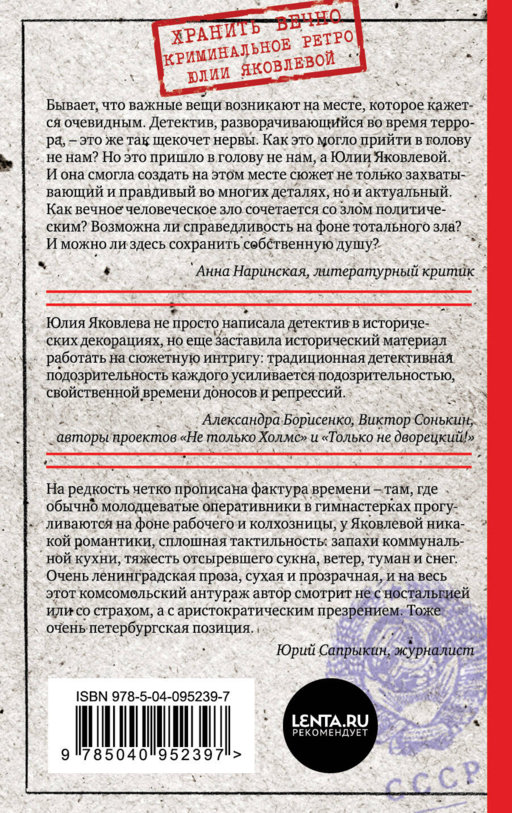 Юлия Яковлева делает то, на что не отважился до нее ни один писатель, - перемещает классический детективный сюжет в сталинскую эпоху. И меняет наши представления о детективе, а заодно и о всей литературе.
