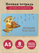 Тетрадь для нот. Совенок-музыкант (8 л., А5, горизонтальная, скрепка)