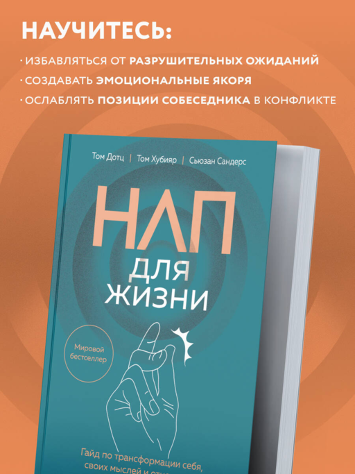 Эта книга — ваш практический путеводитель по нейролингвистическому программированию. В ней мастера НЛП Том Дотц, Сьюзен Сандерс и Том Хубияр предлагают 29 упражнений, которые помогут прокачать силу влияния на собеседников: убеждать, подчинять и менять реальность. А еще они предлагают 21-дневную программу, пройдя которую вы превратите страхи в мечты, а цели — в результаты.