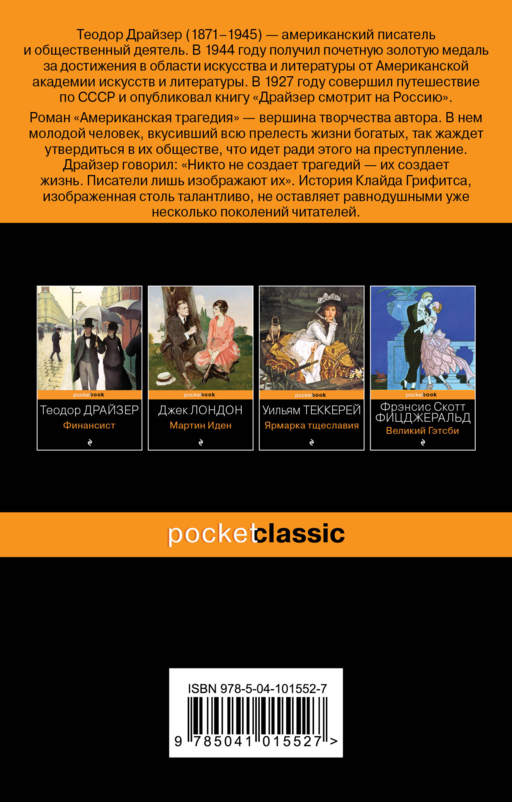 Вершина творчества Теодора Драйзера. Непревзойденное изображение суровой реальности и темной стороны американской мечты, исключительное по силе и размаху, не оставляет равнодушным уже несколько поколений читателей.