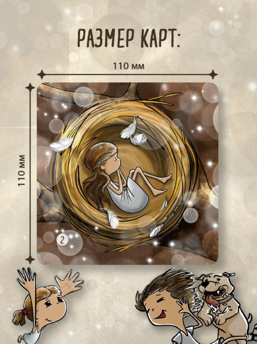 • 52 вдохновляющие карты с теплыми душевными иллюстрациями.