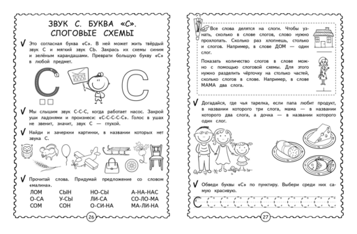 Для удобства материал разделён на небольшие занятия, включающие в себя интересные игровые задания. Прежде чем сформируется навык беглого осмысленного чтения, ребенок должен пройти несколько этапов: 1) развить фонематический слух, 2) понять, как образуются слоги, 3) научиться читать односложные слова, 4) отработать технику слогового чтения на предложениях, 5) потренировать навык чтения на небольших текстах, 6) научиться понимать прочитанное и отвечать на вопросы.