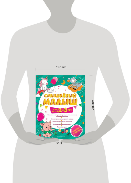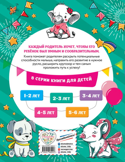 Основная задача книги — повысить уровень IQ малыша, расширить его познавательные способности и кругозор в процессе весёлой увлекательной игры. Путешествуя по страницам книги, малыш будет радоваться, узнавая знакомые рисунки, и с удовольствием рассматривать новые; научится различать цвета; делать логические выводы; находить предмет по описанию; выявлять сходства и отличия; определять закономерности; дорисовывать недостающие элементы, а также сможет развить мелкую моторику, внимание, память и речь. Яркие красочные картинки будут стимулировать интерес ребенка к занятиям, а подсказки для родителей, имеющиеся внизу каждой страницы, помогут провести занятие максимально эффективно.